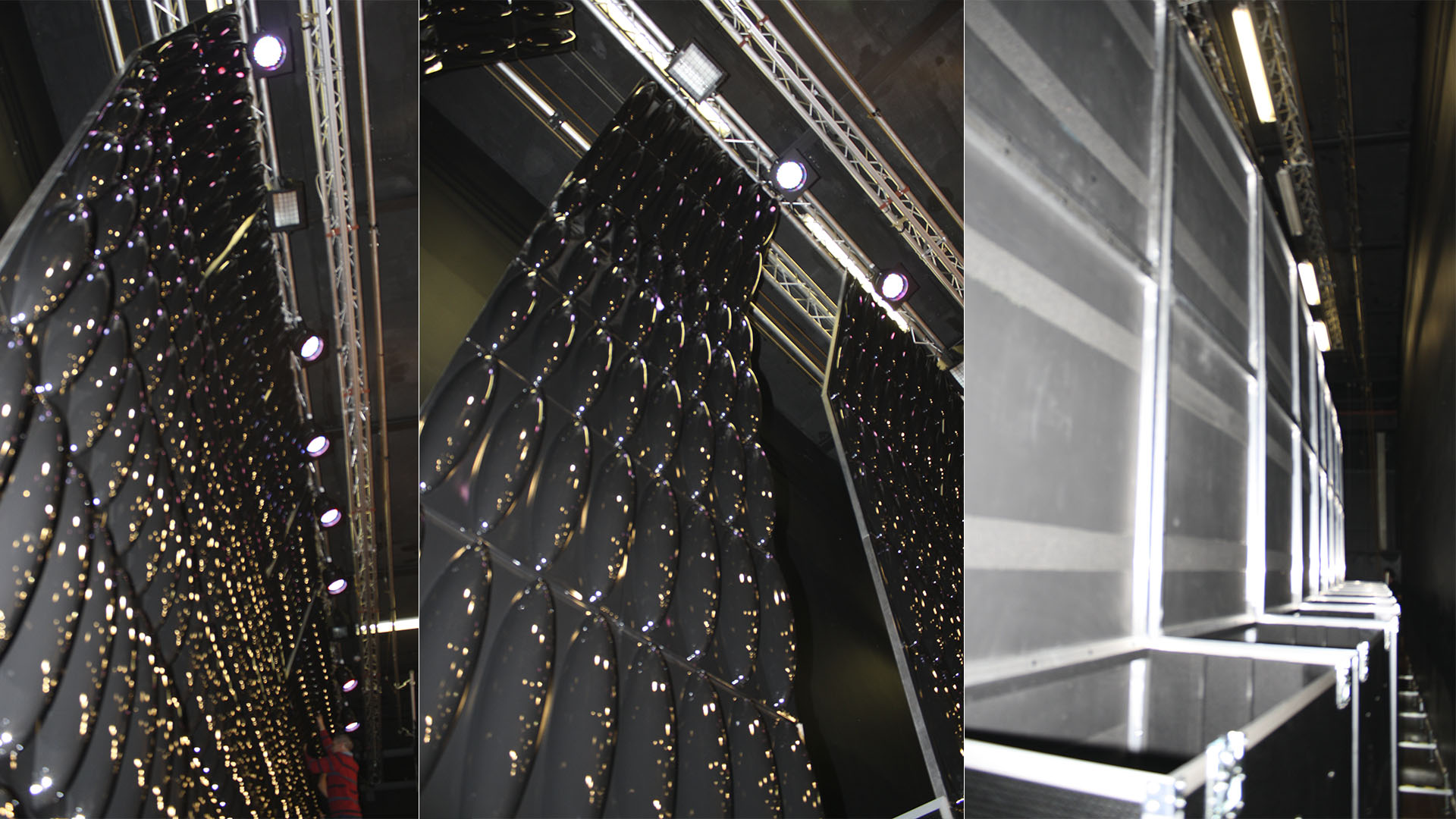 The installation of these acoustic diffusion components is meant to project the non-amplified original sound from the stage towards the audience. This will enable to hear the sound that comes directly from the sound sources and instruments, without the characterization or colouring inherent to the use of electroacoustics.